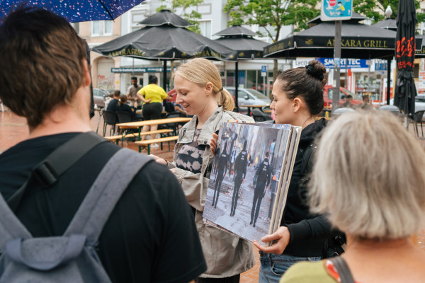 Die verschiedenen künstlerischen Positionen zeigen die Vielfalt der Kuration und schaffen Schnittstellen zwischen Kunst und Stadtgemeinschaft, die an Orten stattfindet, wie der Kieler Innenstadt, dem Ostufer und der Hörn, die bisher nicht im kulturellen Fokus liegen.